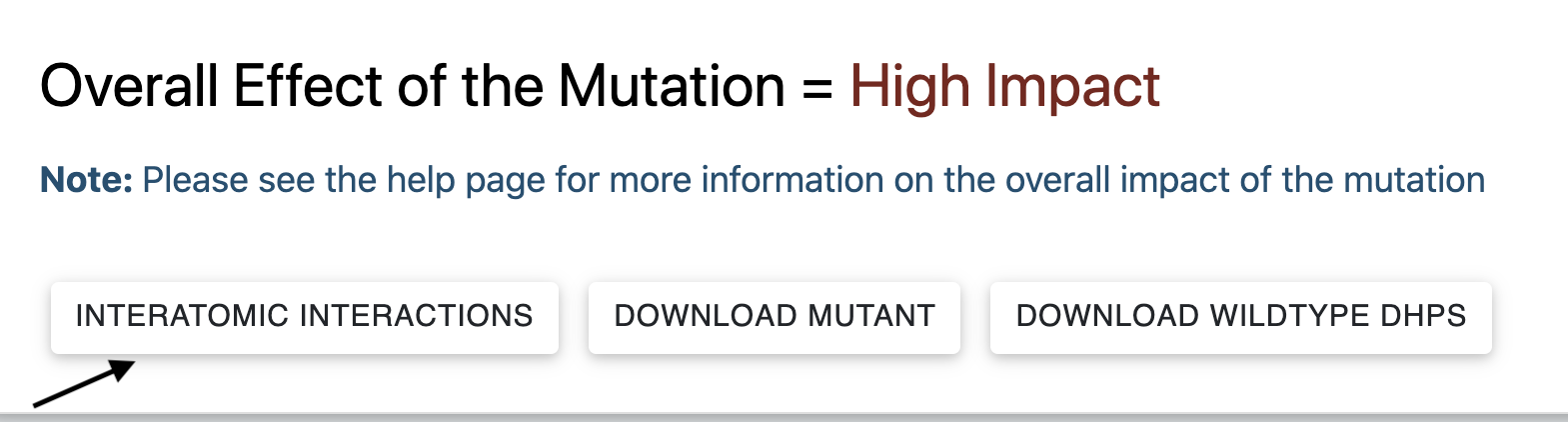 From the results page for single mutation queries, click on the "Interactive Interactions" button (figure below) to visualise the models of the wildtype and mutant proteins: